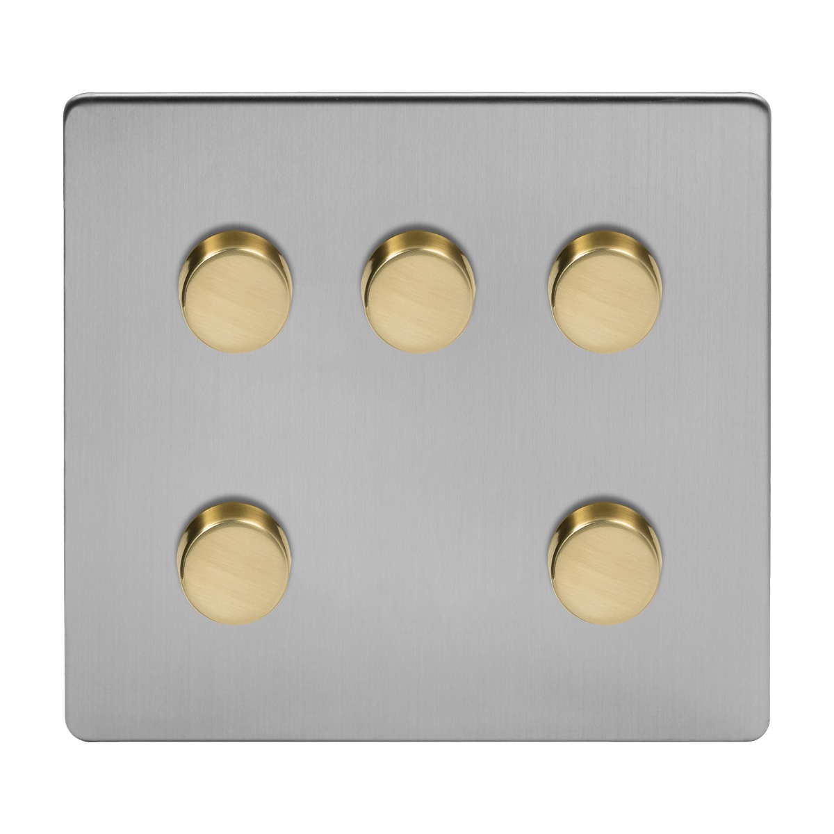 Soho Lighting Brushed Chrome & Brushed Brass 5 Gang Dimmer Switch 150W LED Trailing Edge Dimmer Screwless