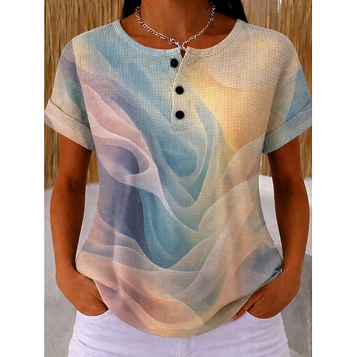 T-shirt waffle per donna stampa grafica a blocchi di colore geometrica vintage elegante classica manica corta collo rotondo top regolari quotidiani bianco e nero nero bianco giallo rosso estate