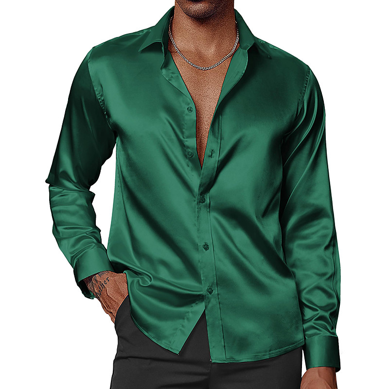 Men's Shirt Satin Shirt Dress Shirt Casual Shirt Button Up Shirt Untucked Shirts Plain Formal Wedding Black White Wine Green Long Sleeve Lapel Spring Fall All Seasons Clothing Apparel Plain