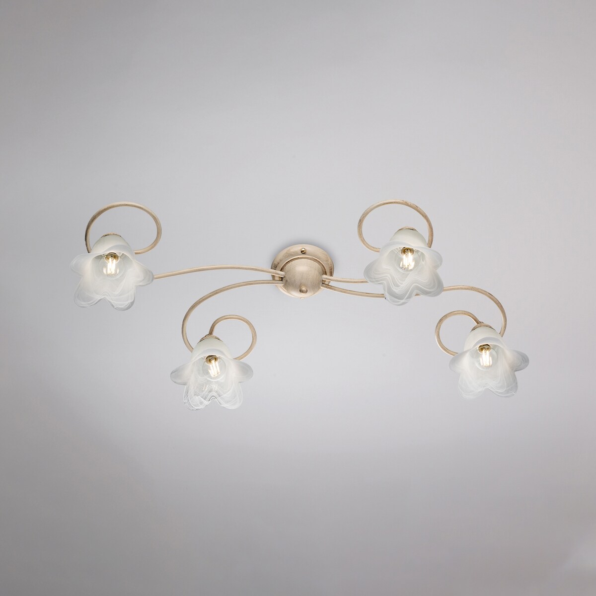 BeLight Alice - Deckenleuchte elfenbeinfarben, Antikgold, Alabasterglas Ø14, 4-flammig, L87x40 - BL230-PL4-AV