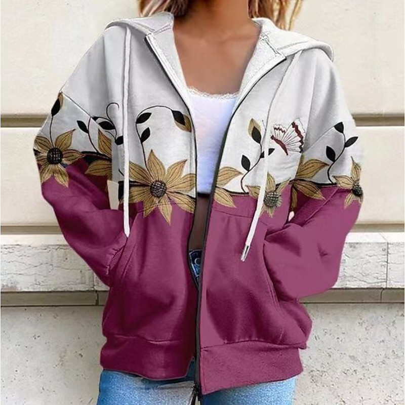 Women's Hooded Sweatshirt Jacket Long Sleeve Zip Up Hoodie With Pocket Lightweight Casual Micro-elastic Floral Graphic Fashion Street Dailywear Pocket Print White Purple Fuchsia Spring Fall
