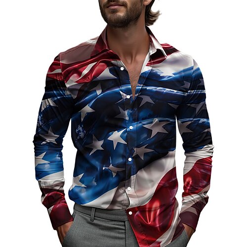 Per uomo Bandiera Americana Camicia Camicia casual Camicia da Spiaggia Manica Lunga Casual Confortevole Vacanza Streetwear Camicia hawaiana Primavera Autunno Bavero Stampato Blu reale Blu Blu