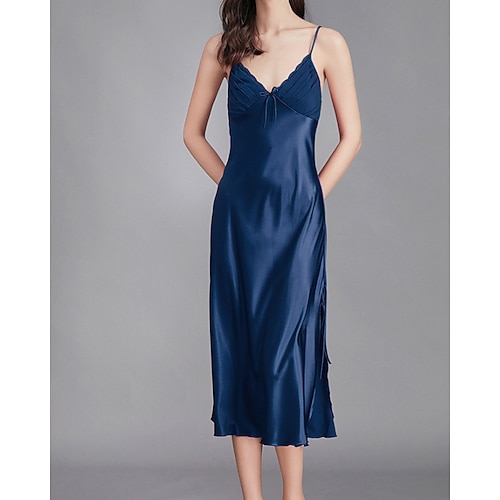 Damen Nachthemd Lässig Weich Satin Einfarbig Rückenfrei Kleid Täglich Heim Bett Ärmellos Träger Schwarz Champagner Rosa Rote Purpur Sommer Normale Passform