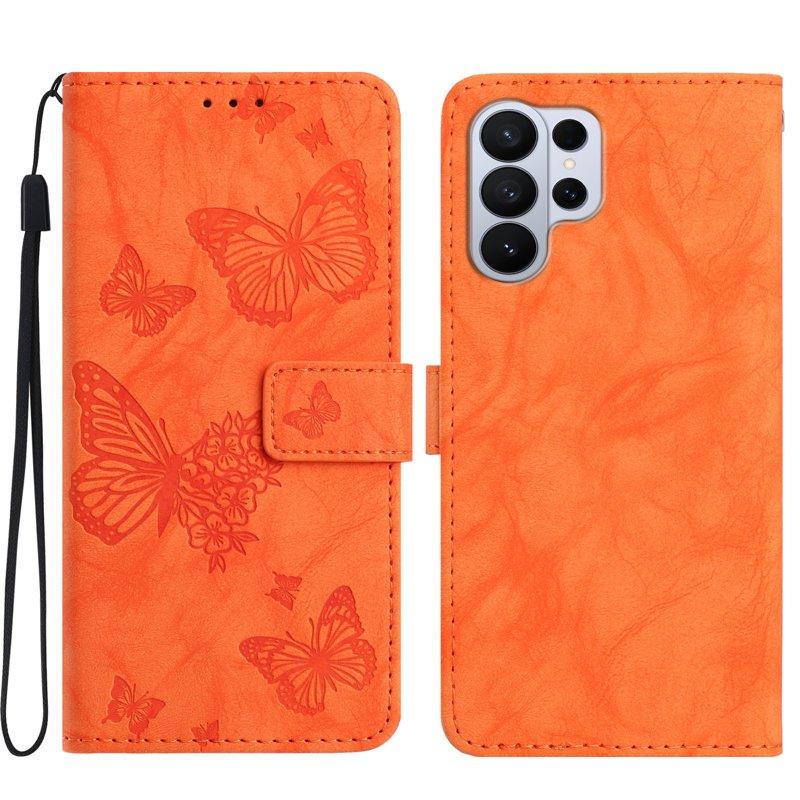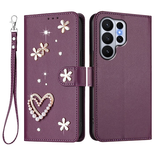 Handy Hülle Handyhüllen Für Samsung Galaxy S26 S26 Plus S26 Ultra Brieftaschenhülle Flip-Cover Mit Handgelenkschlaufe Ständer Schmetterling Retro TPU PU-Leder