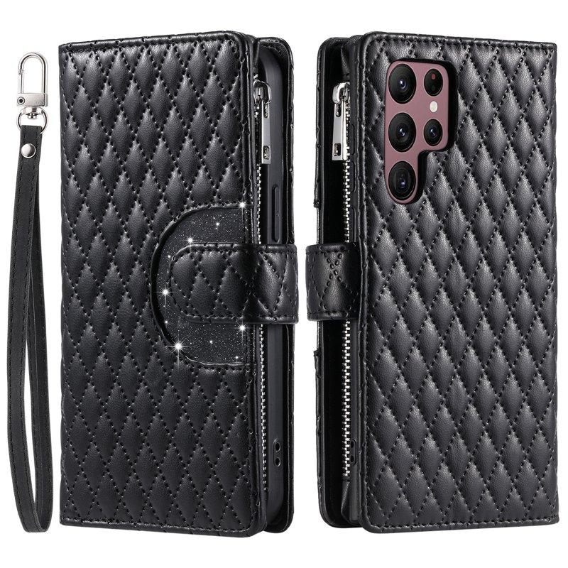 Mobilskal till SAMSUNG Galaxy S26 Ultra Glittrande Konstläder Dragkedja Svart
