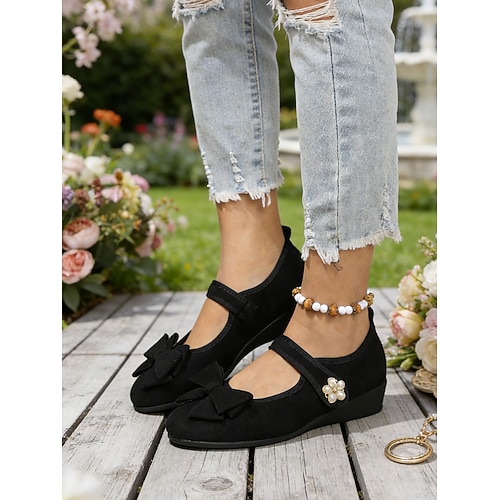 ballerine da donna in finta pelle scamosciata marrone con fiocco e rifiniture in finta pelle, scarpe eleganti e comode per il lavoro, da indossare giorno e notte, in ufficio e per le uscite informali