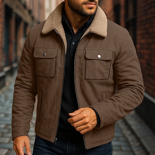 Per uomo Giacca in finta pelle scamosciata Giacca Sherpa Giacca in Camoscio Marrone Casuale Quotidiano Calore Termico Tasca Autunno Inverno Attivo Vintage Regolare Nero Marrone Grigio Giacca