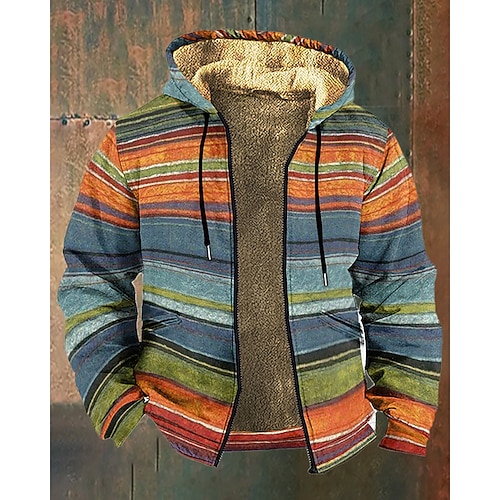 Per uomo Felpa con cappuccio Felpa con cappuccio a zip intera Felpa con cappuccio in pile Sherpa Blu Con Cappuccio Blocco di colori A righe Coulisse Con zip Tasca Sport Outdoor Quotidiano Ferie
