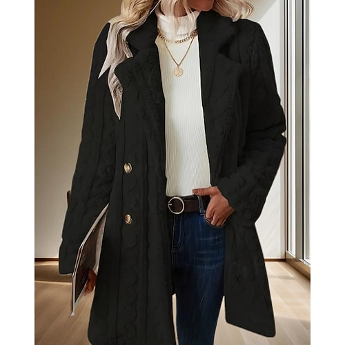 Per donna Cappotto Invernale Giacca Sherpa Caldo Confortevole Bottoni Elegante Moda Casual Semplice Vacanza Streetwear Casuale Abbigliamento quotidiano Monopetto Lungo Collo ripiegato Vestibilit