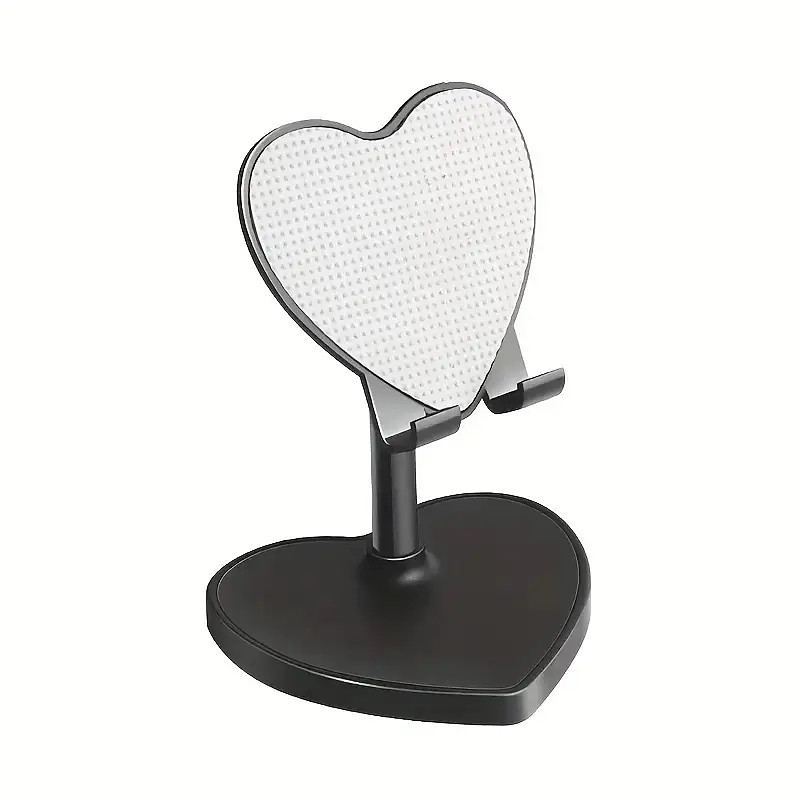 Heart-shaped desktop phone stand with an adjustable folding design compatible with various smartphones and tablets suitable for multiple mobile devices.