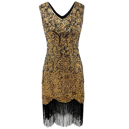 Anni Ruggenti Anni 1920 Lunghezza al ginocchio Abito Flapper Senza maniche Il grande Gatsby Paillettes Frange Scollo a V Costume Per donna Natale Carnevale Mascherata Festa a tema retrò Danza