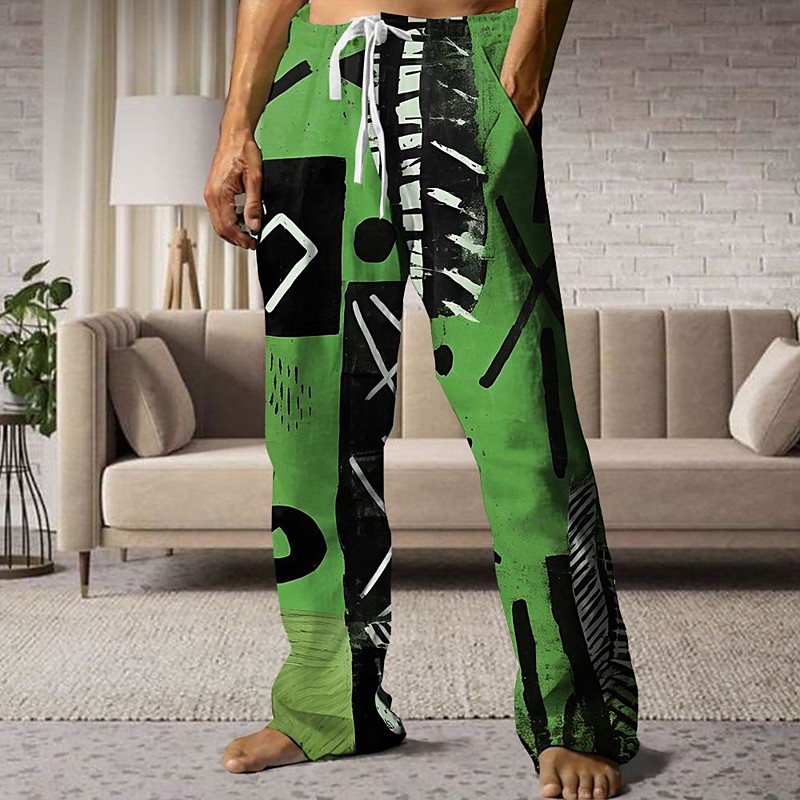 Christmas Men's Lanterns Pants Trousers Drawstring Elastic Waist Casual Party Evening Wear Christmas Party Beach Wear Straight Leg Trousers 3D Print White Blue Green