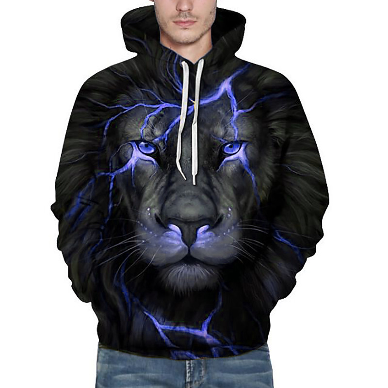 Men's Animal Lion 3D Hoodie Hoodies Sweatshirt Active Long Sleeve Hooded Weekend Denim Blue Black Blue Purple Orange Print Fall Winter Designer S M L XL XXL 3XL