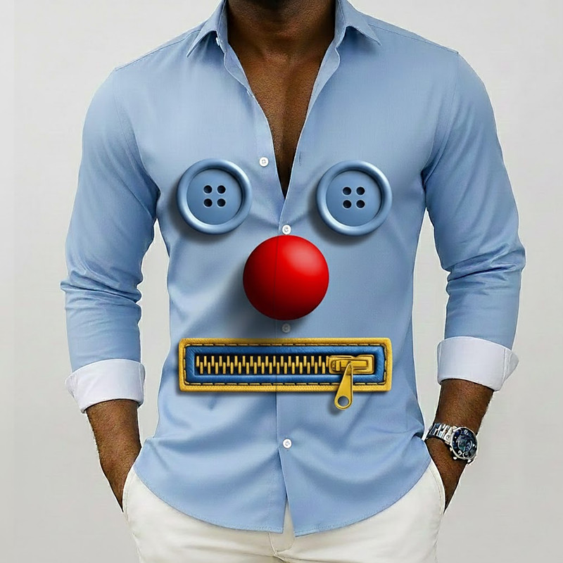 Men's Optical Illusion Button Zipper Face Shirt Button Up Shirt Long Sleeve Funny Outdoor Dailywear Spring Fall Turndown 3D Print Collared Shirts Blue Purple Green