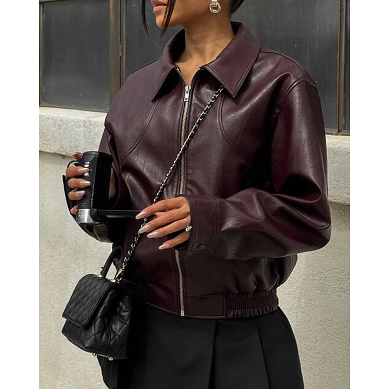 Women's Faux Leather Jacket Biker Jacket Waterproof Windproof Zipper Pocket Modern Outdoor Casual Street Style Plain Christmas Outdoor Street Daily Wear Zipper Stand Collar Regular Fit Long Sleeve