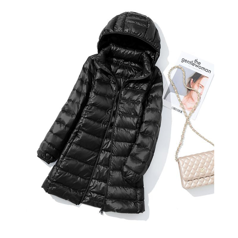 Women's Down Jacket Coat Warm Comfortable Zipper Pocket Fashion Plain Holiday Going out Casual Daily Weekend Zipper Long Hooded Regular Fit Long Sleeve Outerwear Black Blue Purple Fall Winter