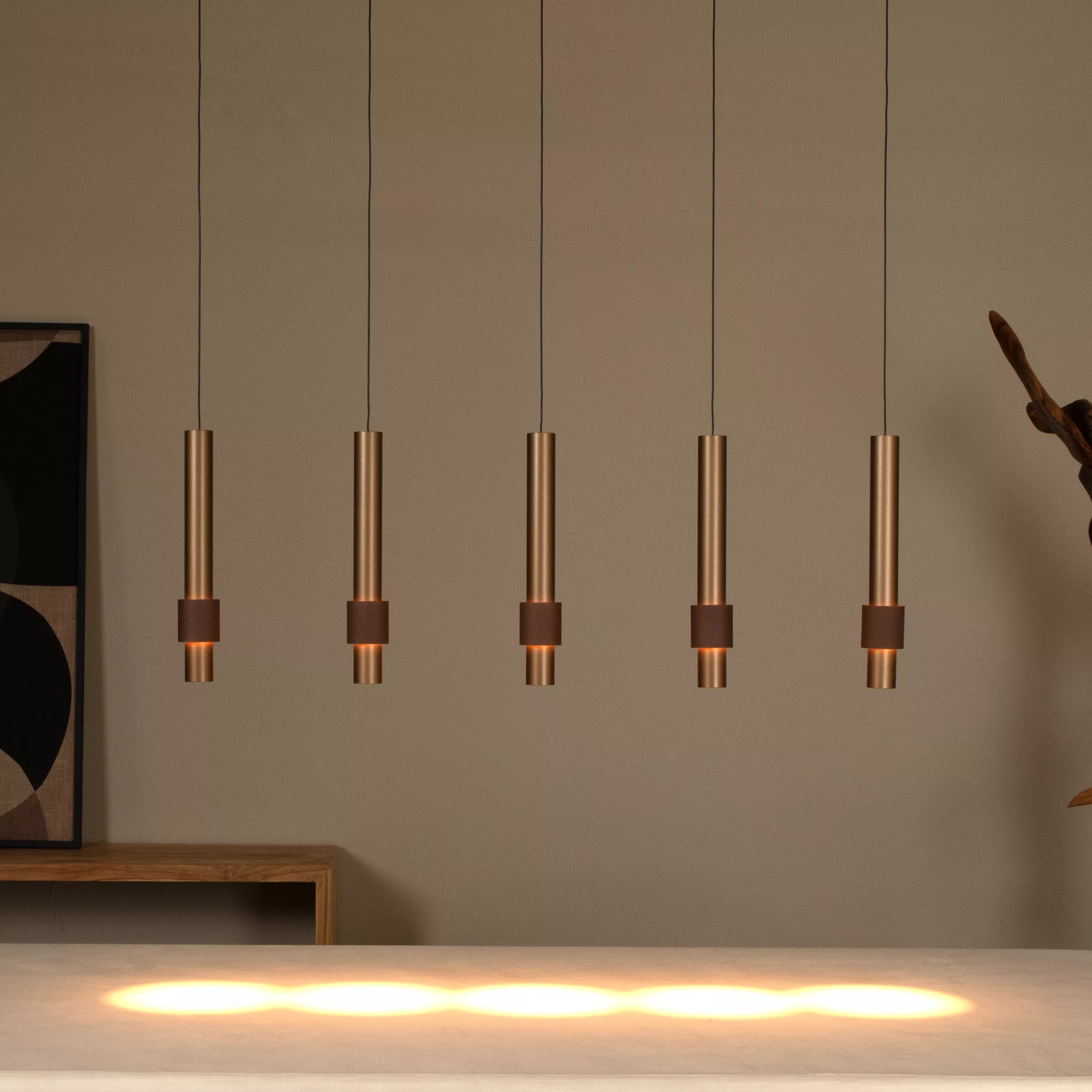 Lucide Margary - lampe suspendue - 103 x 8 x 169 cm - 5 x 4,2W LED dimmable inclus - café