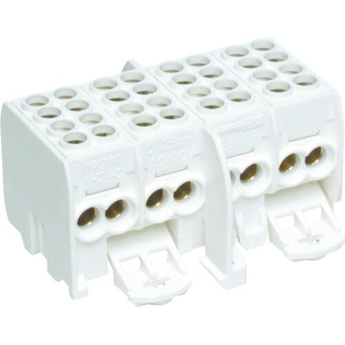 Hager Hauptleitungsklemme, 16Eing, 4pol, schrauben, reinweiß, Berührungssicher, DIN-Schiene, 1,5-25qmm/Zu, 1,5-16qmm/Ab, geeignet für feindrähtige Leite