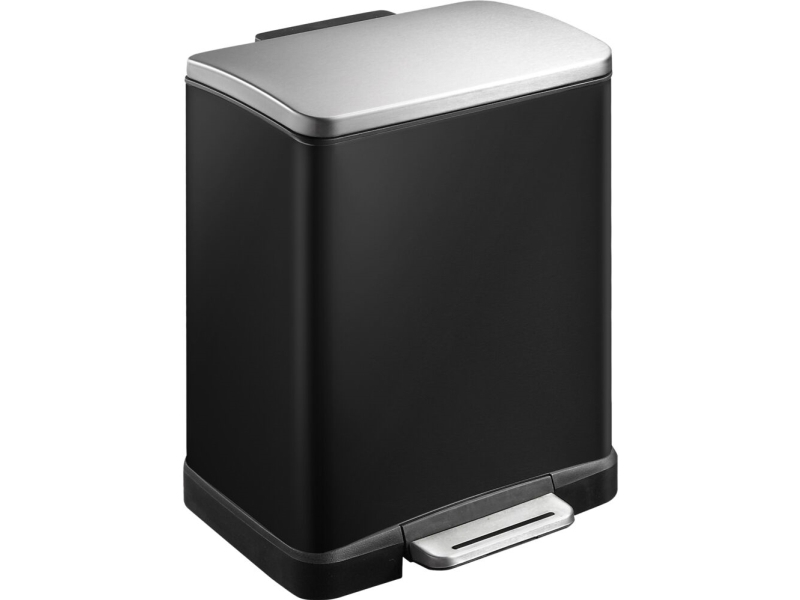 Tret-Abfallsammler, EKO E-cube, schwarz, Edelstahl, 1-Kammer, 12 Liter, mit Kunststoff-Inneneimer und Soft Close