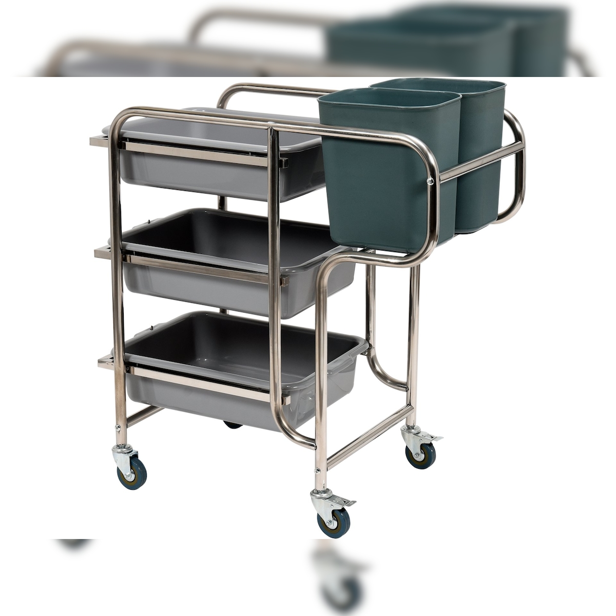 TRIZERATOP Servicewagen, Küchenwagen, Abräumwagen 3 Böden, 5 Behälter 870x435x905mm Edelstahl/PP