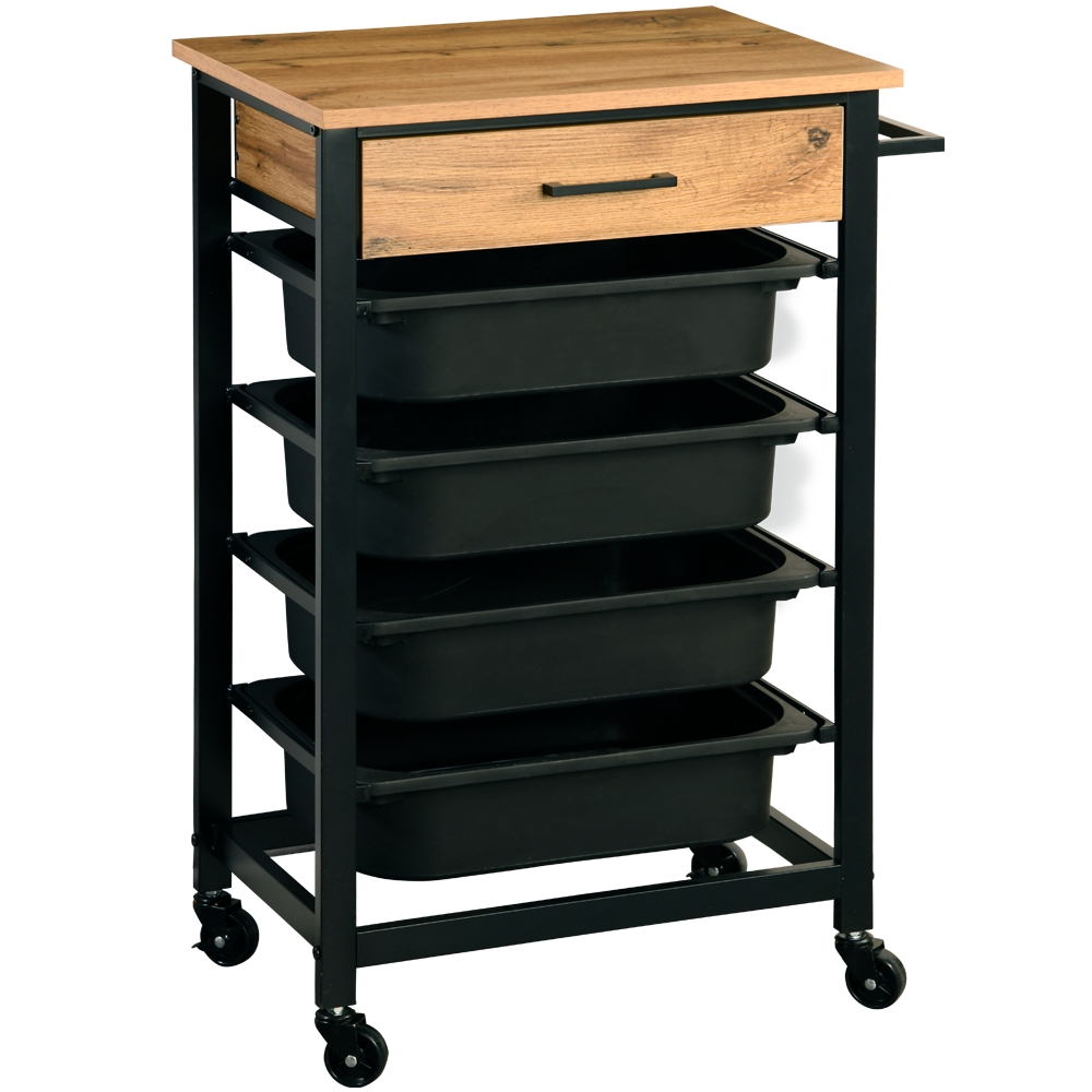 KESPER Küchenwagen, mit 4 Kunststoffbehältern, mit Schublade ,mit 4 Kunststoffbehältern, Farbe: natur / schwarz, Material: Spanplatte /Metall