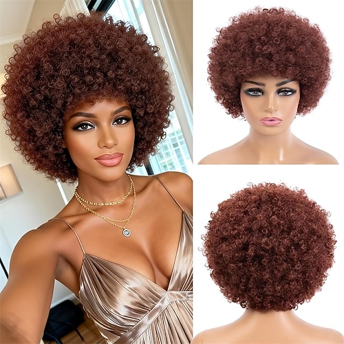 Kurze, lockige Afro-Perücke mit Pony, kleberfrei, für schwarze Frauen und Männer, 70er-Jahre-Disco-Look, voluminös, flauschig, hitzebeständig, natürlich aussehendes Kunsthaar, ideal für Partys,