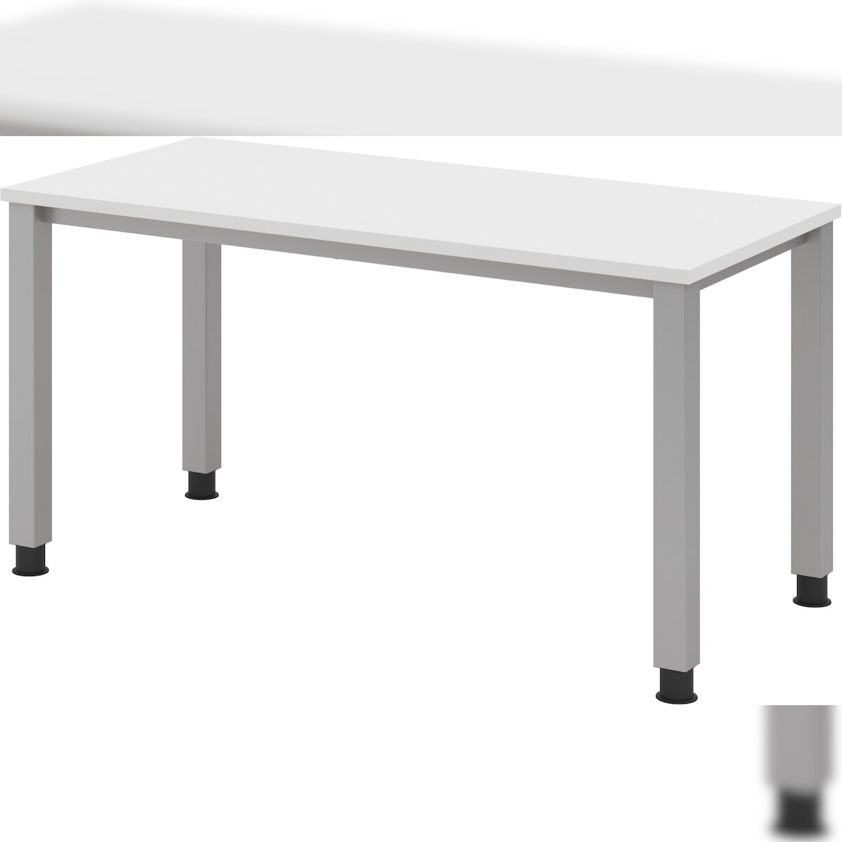 bümö manuell höhenverstellbarer Schreibtisch 140x67 cm in weiß, Metall-Gestell in Silber - PC Tisch höhenverstellbar & klein, Mini-Homeoffice Tisch,