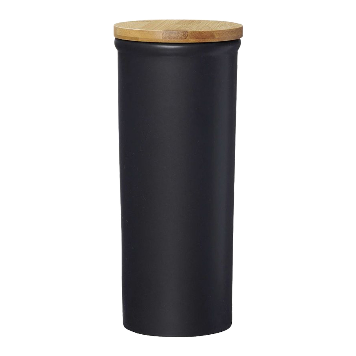 Relaxdays Kaffeedose, 1er Pack, Metall, Bambusdeckel, HxD: 16 x 11 cm, Kaffeebohnen Behälter, Vorratsdose, schwarz/natur