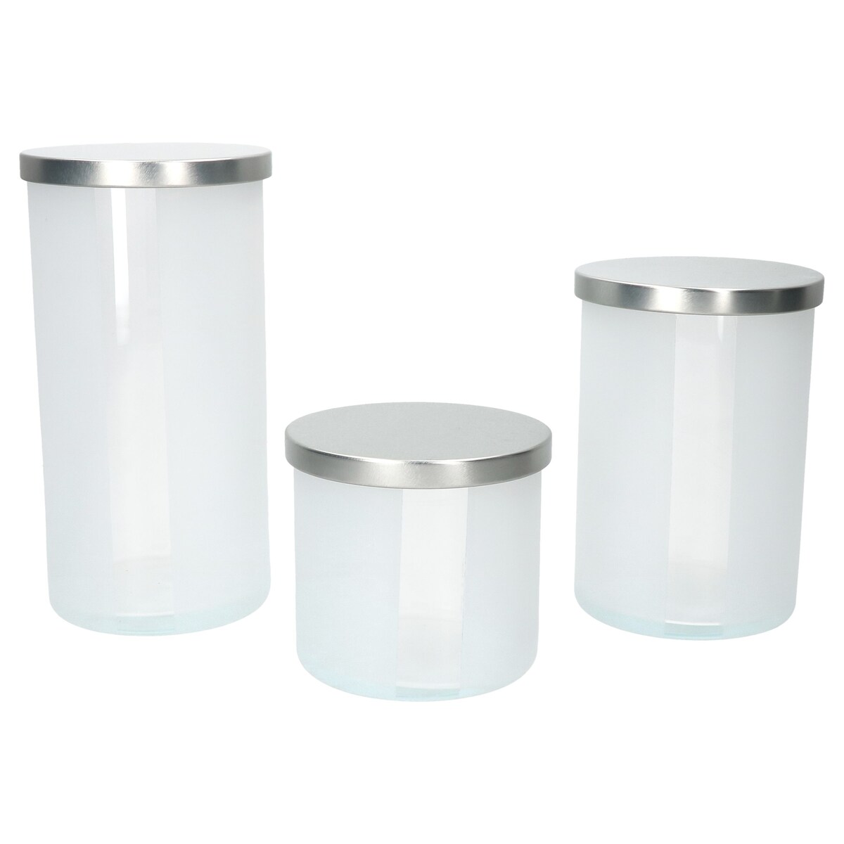 3tlg Set Avar Vorratsdose 1,3L 1L 600ml rund Glasbox mit Metalldeckel