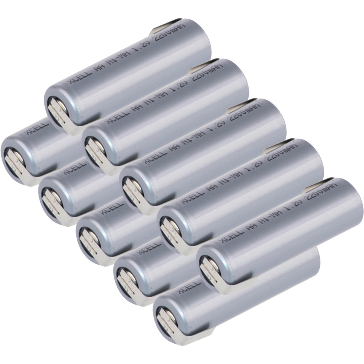 10x XCell Akku Mignon AA 2200 mAh 1,2V NiMh mit Z Lötfahne Flattop Hochstrom