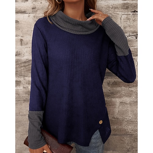 Per donna Felpa Maglione Streetwear Casual Blocco di colori Collo alto Patchwork Lavorato a maglia Spacco Manica Lunga Top Regolari Maglia Quotidiano Ferie Uscire Nero Vino Primavera Autunno