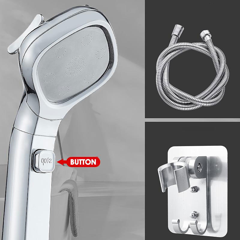 Shower Head 4 Mode Adjustable High Pressure Water Saving One-key Stop Water Handheld Pressurized Showerhead Bathroom Accessories(With 1.5m Water Pipe and Support)