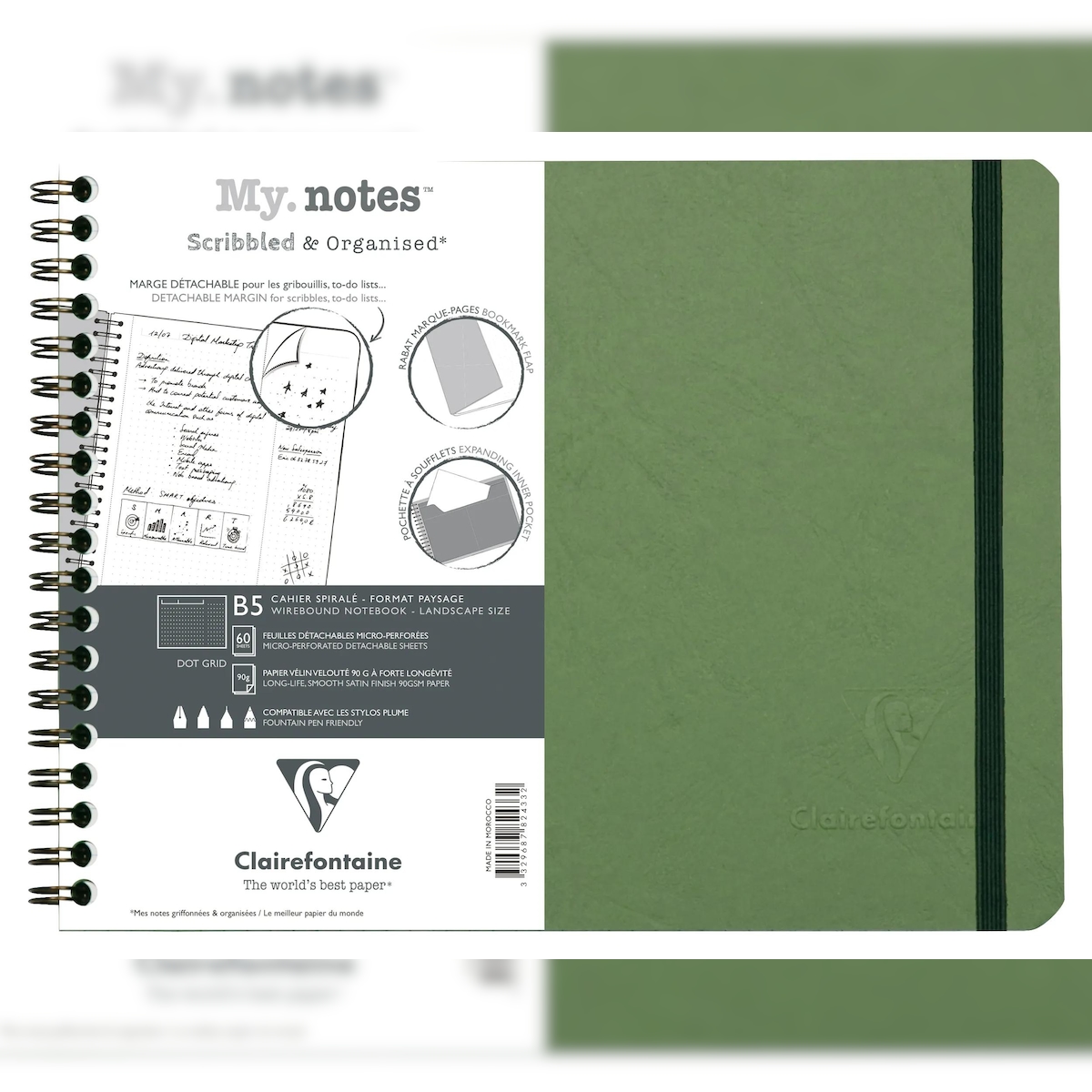 Clairefontaine 5x My.Notes Age Bag, Spiralheft B5 Querformat, 60 Blatt 90g, DOT mit Kopfleiste, abtrennbar, mikroperforiert - Grün 782433C