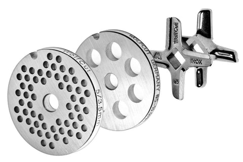 WOLFCUT Fleischwolfscheibensatz 3,5 mm + 10 mm Bohrung kompatibel mit allen gängigen Fleischwolf Marken Größe 5