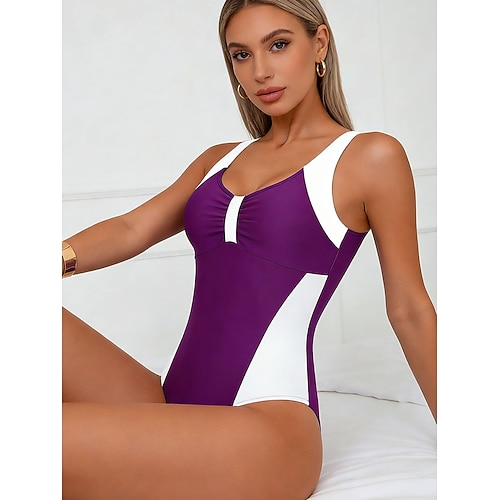 Per donna Costumi da bagno Intero Monokini Costume da bagno Arricciato Controllo della Pancia Snello Senza schiena Vacanza Abbigliamento da Spiaggia Tinta unica Blocco di colori All'americana Senza