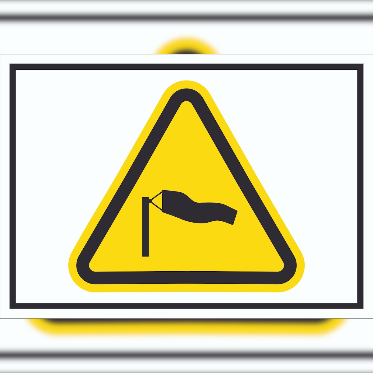 HB-Druck Schild Warnung starker Wind Symbol A6 Rückseite selbstklebend