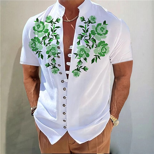 Per uomo Floreale Camicia Camicia con Bottoni Manica Lunga Moda Streetwear Designer All'aperto Casuale Quotidiano Estate Primavera Autunno Collo alla coreana Stampato Verde chiaro Blu Verde Grigio