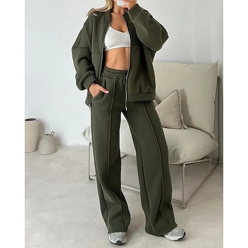 Per donna Moda Streetwear Tuta Set di Pantaloni Bolero Top Manica Lunga Collo alla coreana Semplice Cerniera Casuale Quotidiano All'aperto Verde militare Verde scuro Marrone Estate Vestibilit