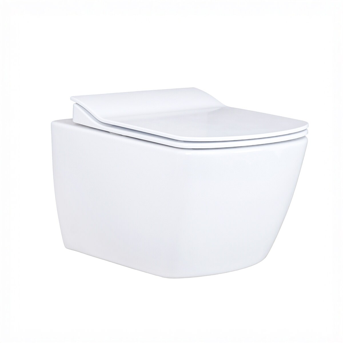 Creavit Design RimOff Hänge WC mit Taharet Edelstahl-Düse (Bidet) Weiß