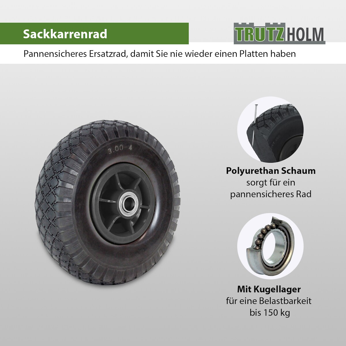 Baumarktplus Sackkarrenrad PU-Rad 260x85 mm 3.00-4 60 mm versetzte Nabe Ø 20 mm schwarz Vollgummi Bollerwagen