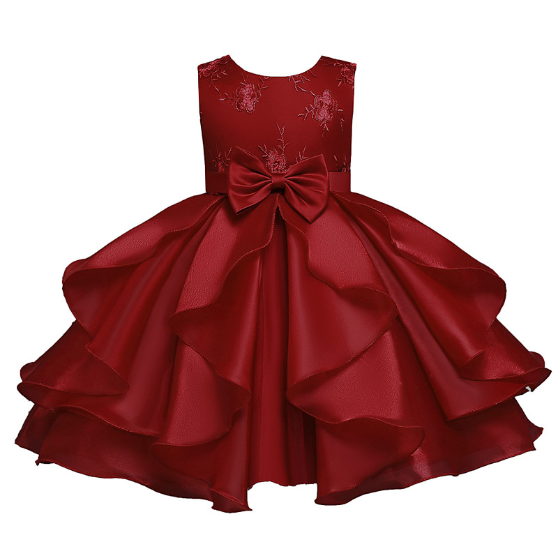 Kids Girls' Dress Solid Colored Flower Short Sleeve Party Daily Embroidered Bow Cute Princess Polyester Midi Floral Embroidery Dress Skater Dress Tulle Dress Summer Spring 2-8 Years Yellow Pink Wine
