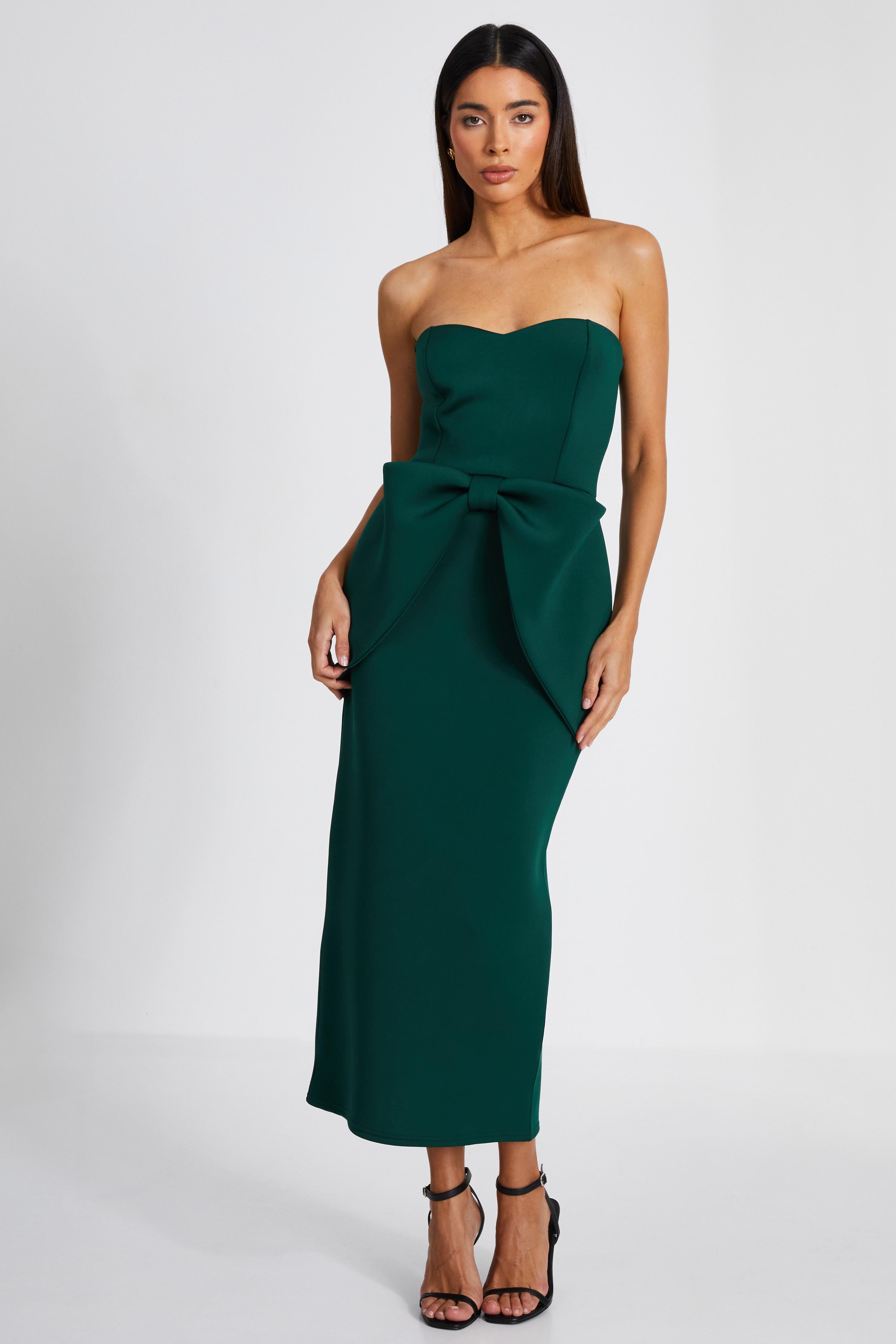 Quiz Womens Bottle Green Bow Midaxi Dress Material_polyester - Size 14 UK | Quiz Sale | Discount Designer Brands