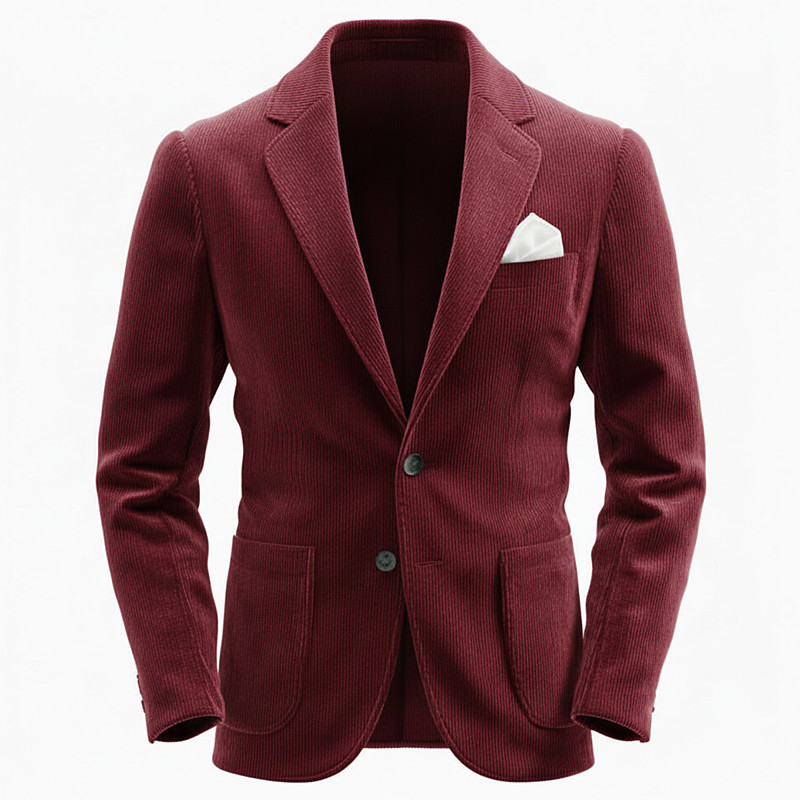 Men's Corduroy Jacket Notch Collar Fashion Retro Vintage Classic Solid Colored Line Blazer Black Light Green Burgundy Tailored Fit Single Breasted Two-buttons
