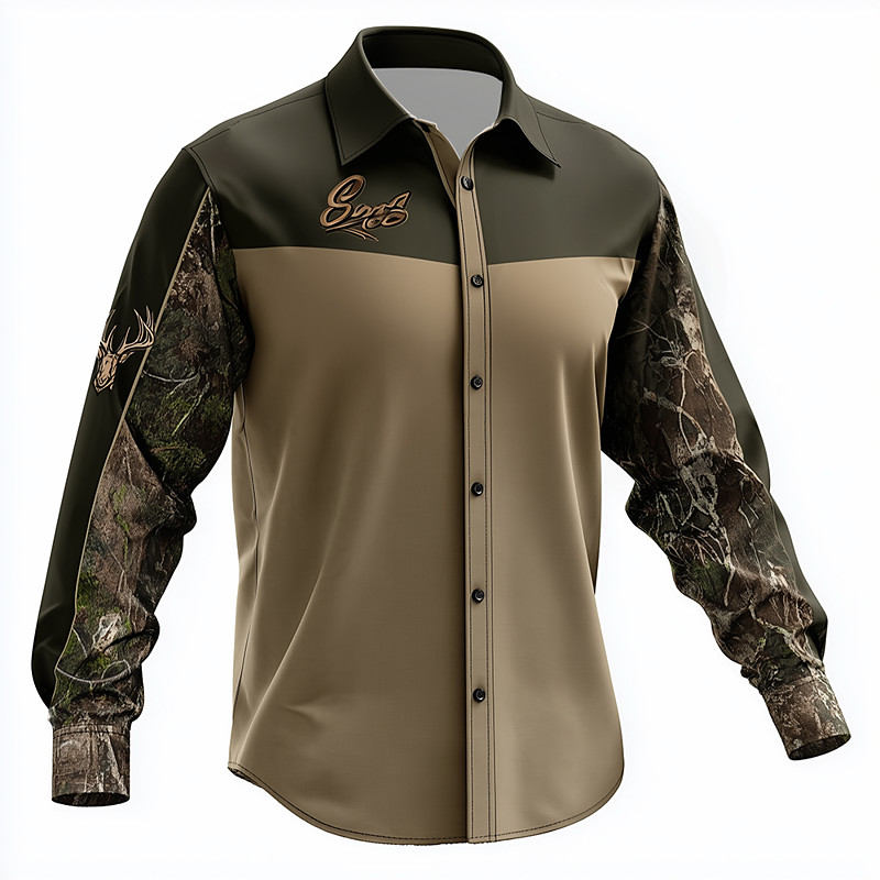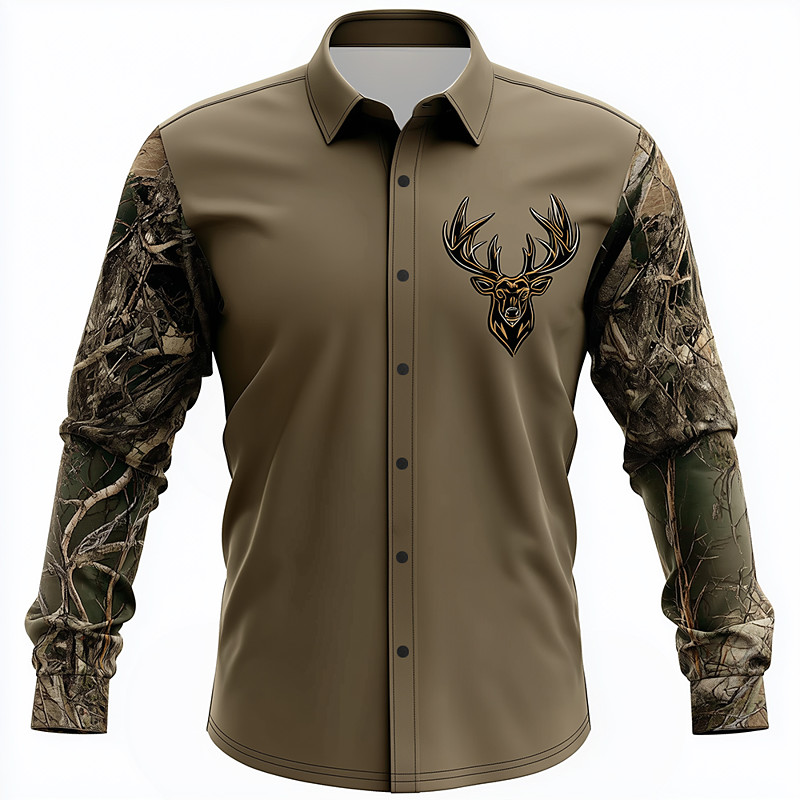 Men's Camo Reindeer Camouflage Shirt Button Up Shirt Long Sleeve Vintage Retro Outdoor Camping Hiking Hunting Spring Fall Turndown 3D Print Linen Like Shirt Dark Khaki Camouflage khaki Khaki