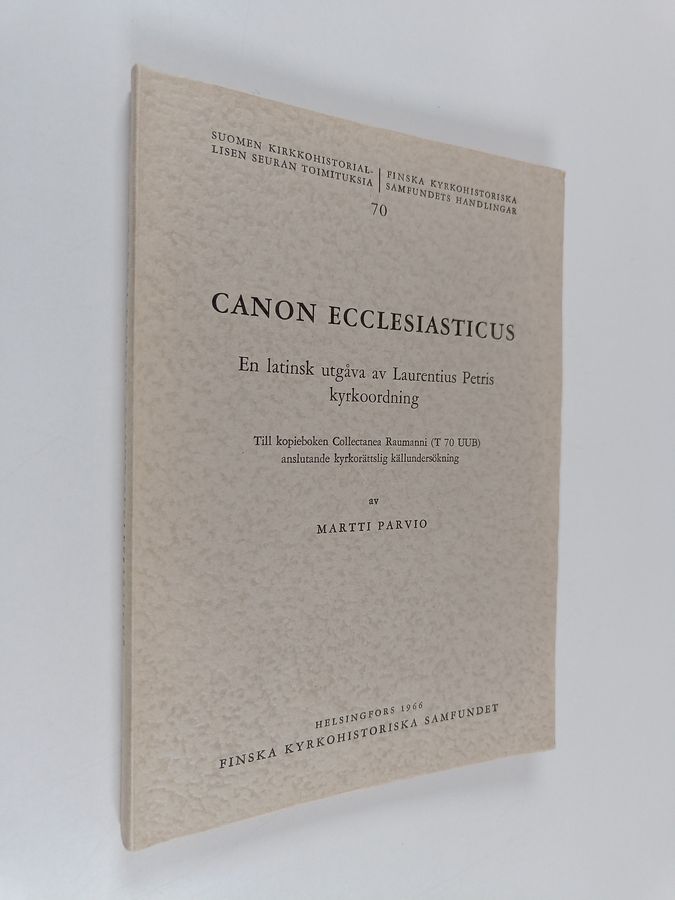 Martti Parvio : Canon Ecclesiasticus : en latinsk utgåva av Laurentius Petris kyrkoordning : till kopieboken Collectanea Raumanni (T 70 UUB) ...