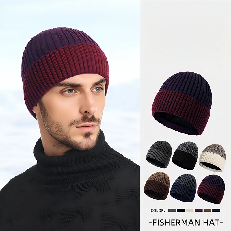 Autumn Winter Knitted Hat for Men Double Layer Fleece Lined Wool Warm Cold Weather Beanie Stylish Knit Cap for Outdoor Sports Casual Daily Wear