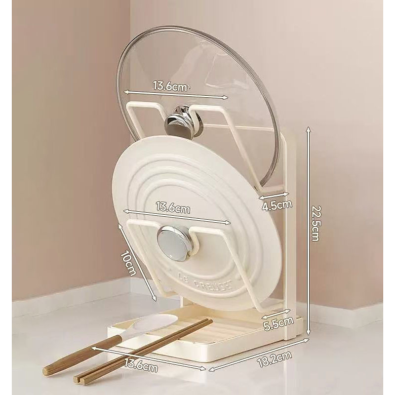 Kitchen Pot Lid Storage Rack, Thickened Carbon Steel Pot Lid Holder While Cooking Spoon Rest, Multifunctional Pot Lid Organizer with Removable Drip Tray for Countertop, Space-Saving Lid Rack