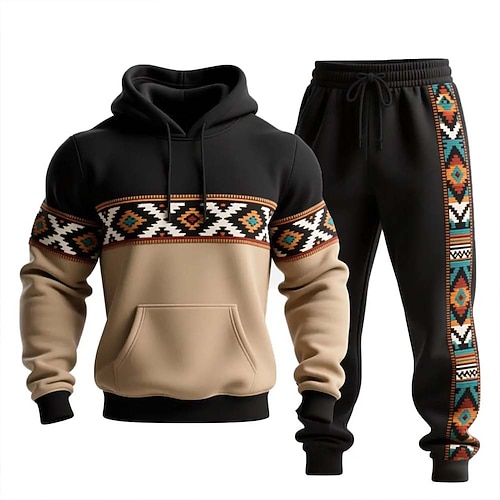 Per uomo Geometrico 2 pezzi Set di felpe 3D Felpa con Cappuccio Manica Lunga Pantaloni lunghi Con Cappuccio Stile Etnico Casual Quotidiano Athleisure Stampa 3D Primavera Autunno Inverno Nero