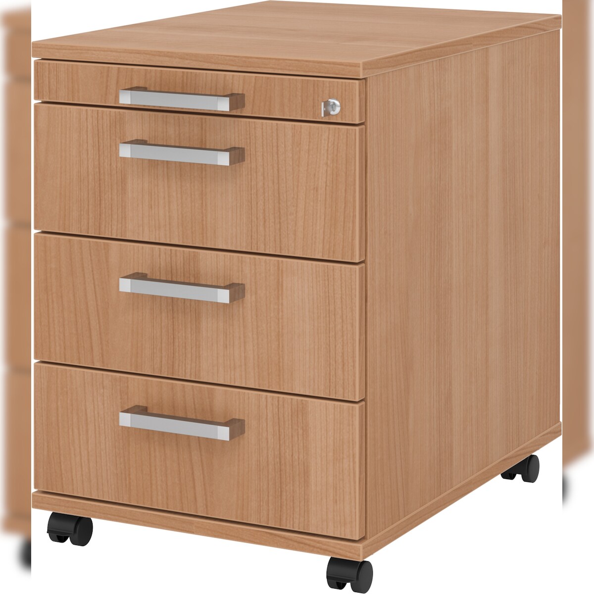 bümö Rollcontainer mit Schubladen, Container abschließbar aus Holz in Nussbaum - Rollwagen für's Büro als Schreibtisch Unterschrank, Bürocontainer