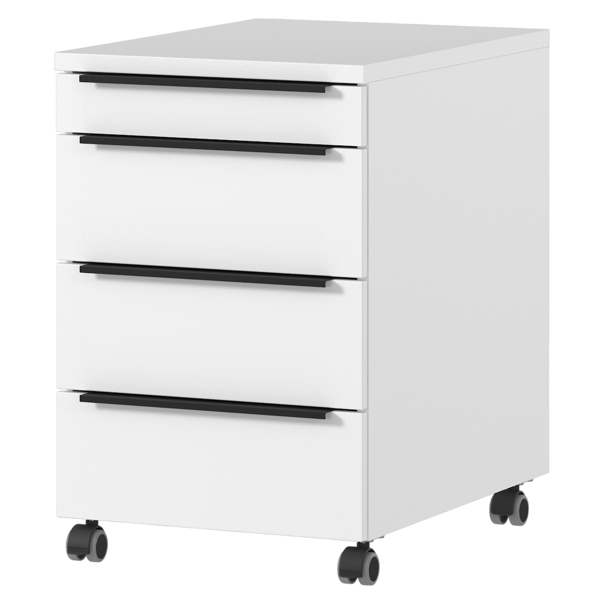 bümö Space Rollcontainer mit Schubladen, Container aus Holz in weiß - Rollwagen für's Büro als Schreibtisch Unterschrank, Bürocontainer od.